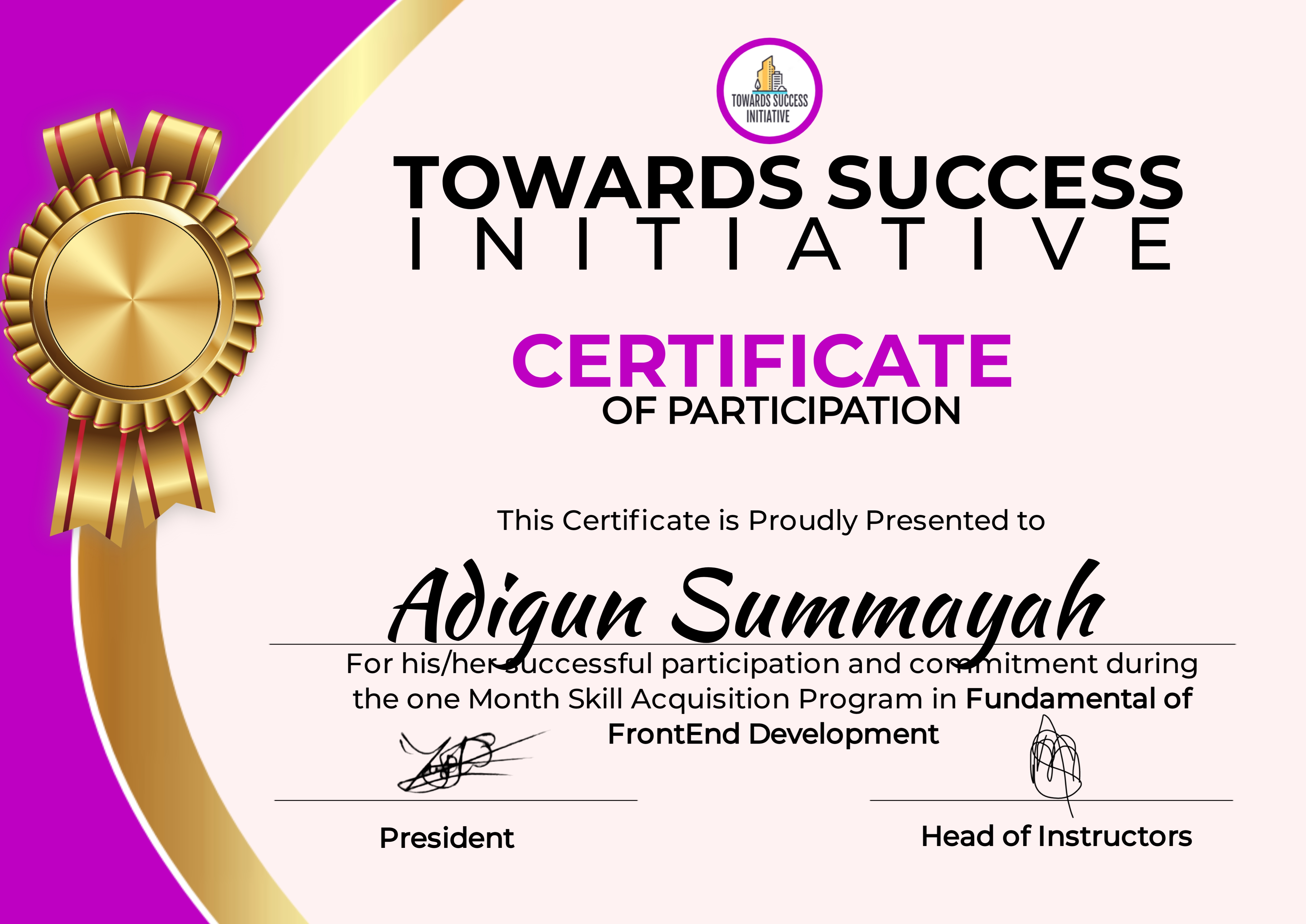 Access link the to your certificate Here